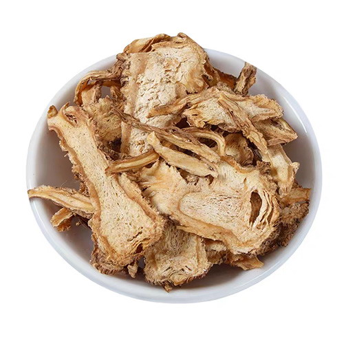 【 鑒別 】本品橫切面:木栓層為數(shù)列細胞。栓內層窄,有少數(shù)油室。韌皮部寬廣,多裂隙,油室和油管類圓形,直徑25~160µm,外側較大,向內漸小,周圍分泌細胞6~9個。形成層成環(huán)。木質部射線寬3~5列細胞;導管單個散在或2~3個相聚,呈放射狀排列;薄壁細胞含淀粉粒。 粉末淡黃棕色。韌皮薄壁細胞紡錘形,壁略厚,表面有極微細的斜向交錯紋理,有時可見菲薄的橫隔。梯紋導管和網紋導管多見,直徑約80µm,有時可見油室碎片。